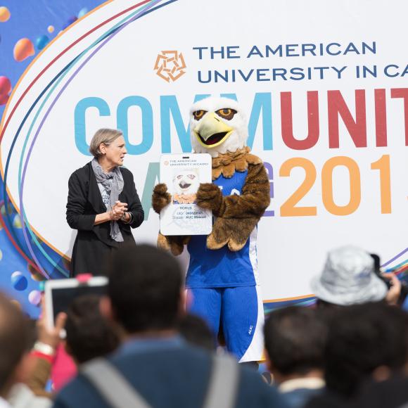 AUC's Eagle mascot appears and engages at several University events and community engagement activities.