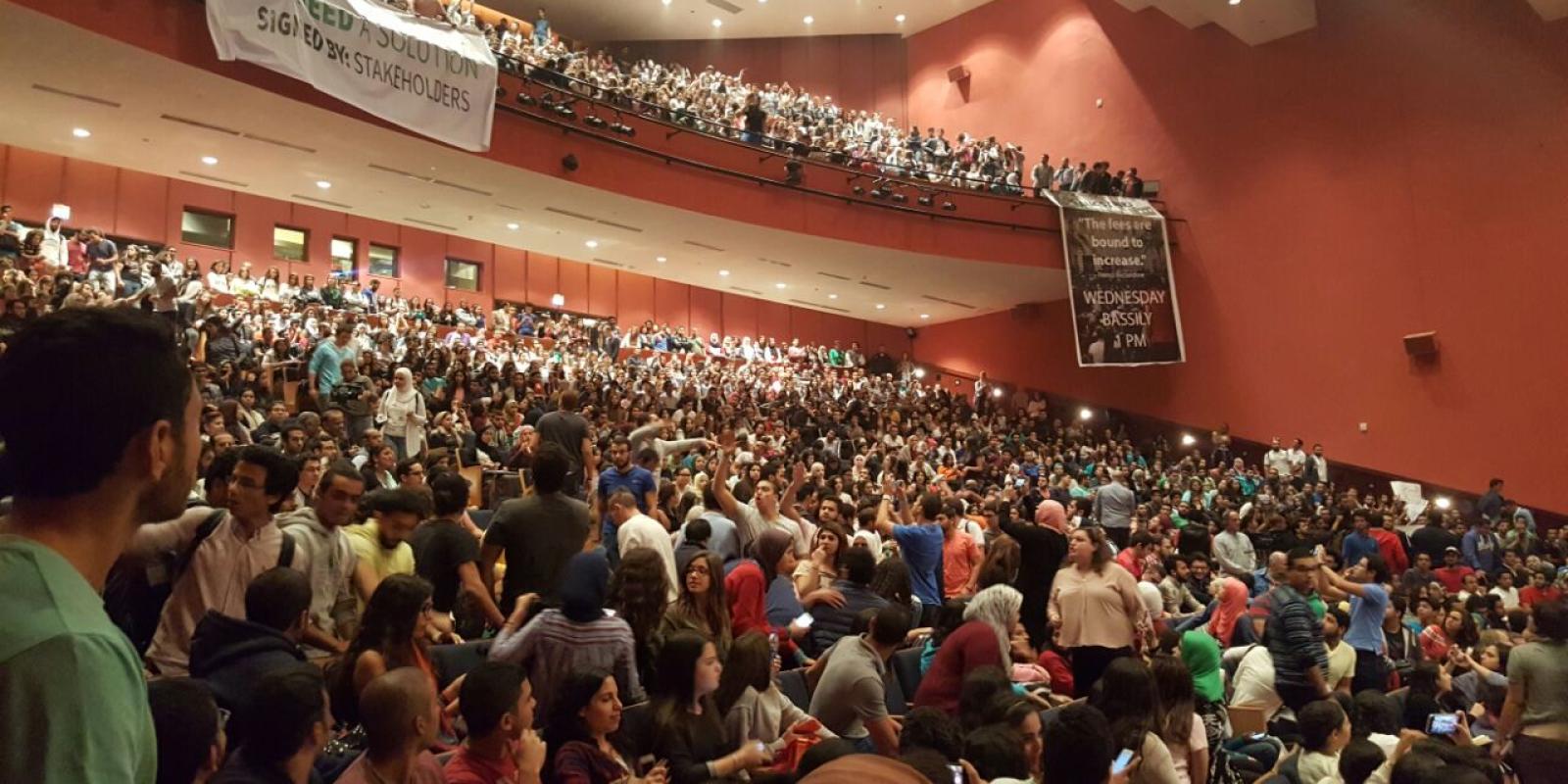 Student Union President Amr El Alfy thanked the administration for its quick decision on the deferred payment due in November, while expressing the students’ demands for long-term solutions. El Alfy expressed a lack of trust in both the Parents Association and the administration, and said more needs to be done to build trust between students and the administration.