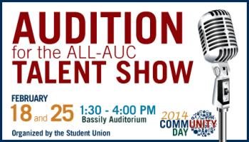 Organized by the Student Union, the All-AUC Talent Show, to be held onCommunity Day, aims to unleash the talents of AUC community members, whether students, faculty, staff or alumni.